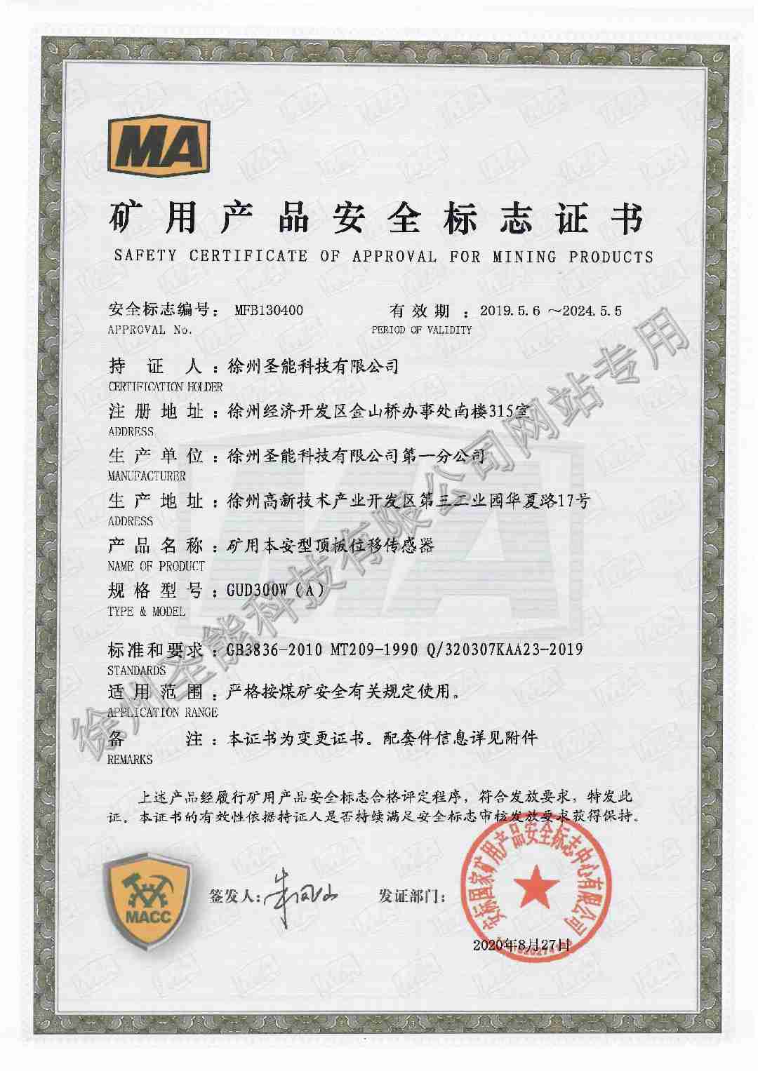 下一篇:GUD300W(A)礦用本安型頂板位移傳感器防爆證
